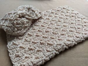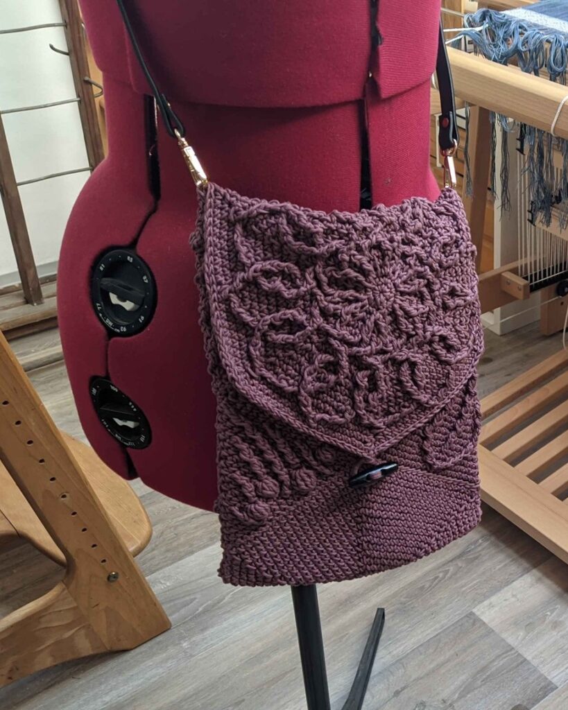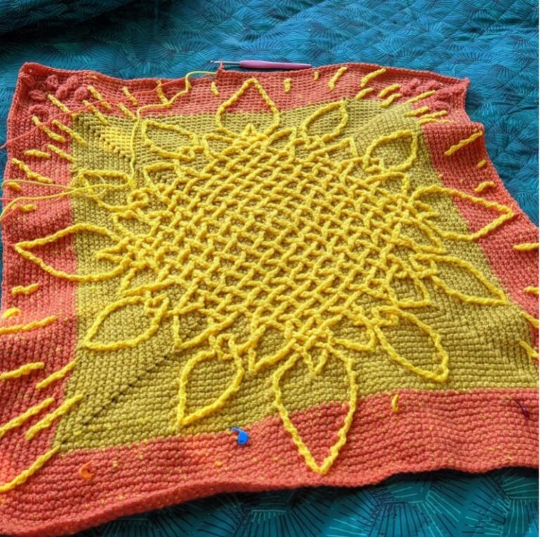 Drobný květinový motiv vhodný ke zpracovánní zbytků příze.