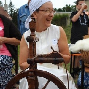 Přes muzejní exponát v expozici muzea které jsem v obci vybudovala, úplně stejně i k předení.